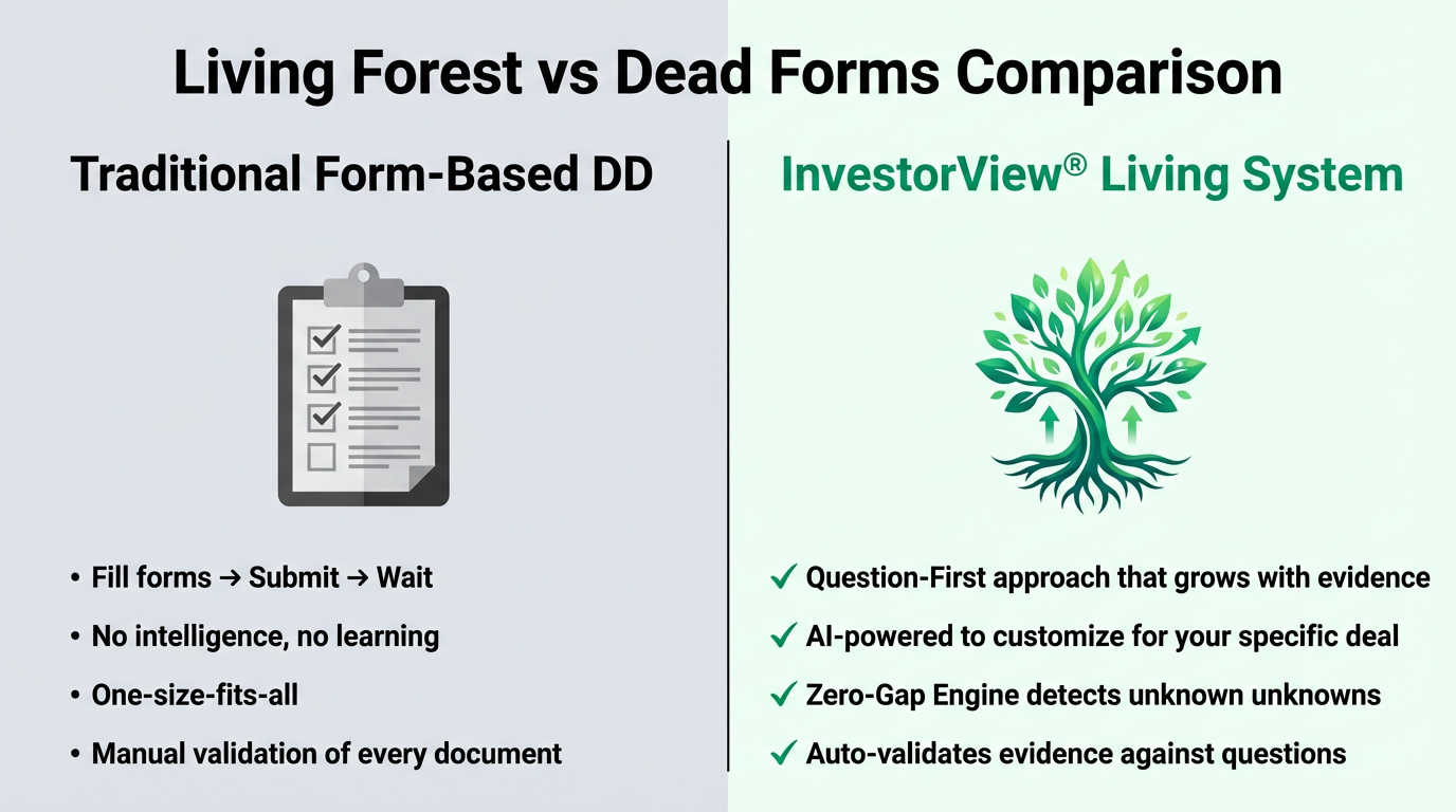 Think of due diligence as growing a forest, not filling forms. Each deal starts as a seed and grows into a complete picture.